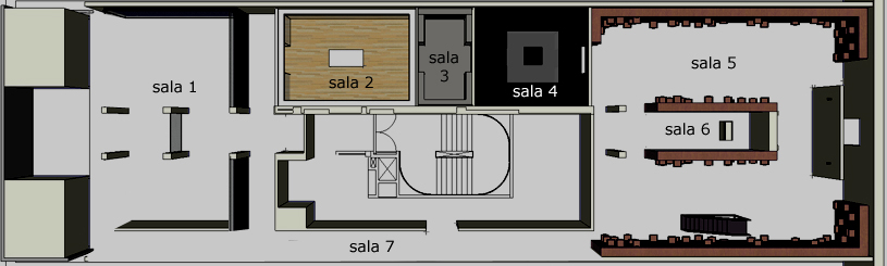 Planta de situação expográfica da exposição "A Hora da Estrela", com identificação das sete salas que compunham o percurso expositivo.