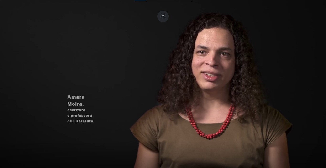 Eu faço parte da comunidade LGBT, eu sou gay. Então percebo que alguns sinais não combinam. Aí precisa mudar, mudar... Tem alguns sinais que são machistas! Ah, esses sinais não combinam! Então existe uma discussão sobre o sentido subliminar dos sinais. Tipo... alguns usam esse sinal para “lésbica”, já outros sinalizam desta forma: “lésbica”. Uns falam: “gay”. Outros falam: “G-A-Y”. “Gay”. Porque anos atrás era só esse sinal, “gay,gay,gay,gay,gay”, tudo era sinalizado de uma única forma, “gay”, devido a uma referência assim: “afeminado”. Mas tem homens que não são afeminados, não apresentam nenhuma característica afeminada. Não tem nada a ver com feminilidade. Nada a ver. Eles podem dizer: “Ah, não sou assim...” “Eu sou G-A-Y”. Então agora estão surgindo outras formas de sinalizar “gay”. “Ah, você é gay.” “Ah, você é gay.” Mas a forma como eu quero ser chamado, eu que decido: “gay”, “G-A-Y”, ou bicha! Eu sou bicha surda! Amara Moira, escritora e professora de Literatura Eu gosto muito dessa palavra porque ela sai do teatro, ela sai desses bailes de fantasia, e começa a ganhar as ruas. E começa aqui no Brasil a nomear um conjunto muito marginalizado de pessoas e um conjunto que começa a se ver à partir dessa palavra e transformar os sentidos que ela tem. Então, aqui no Brasil, final do século XIX, começo do século XX, a gente já vê pessoas sendo chamadas de travestis e de alguma forma se chamando também de travestis.