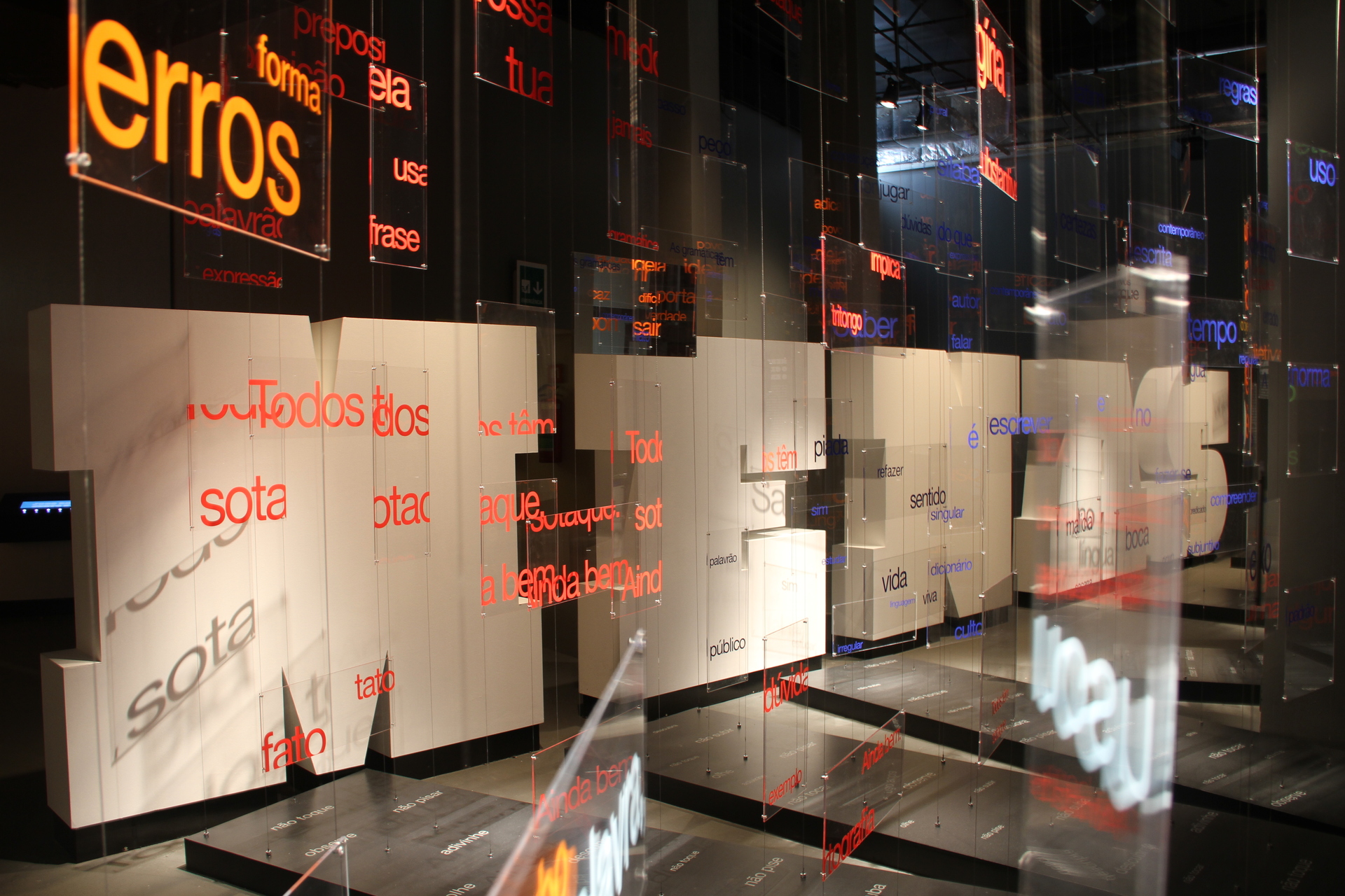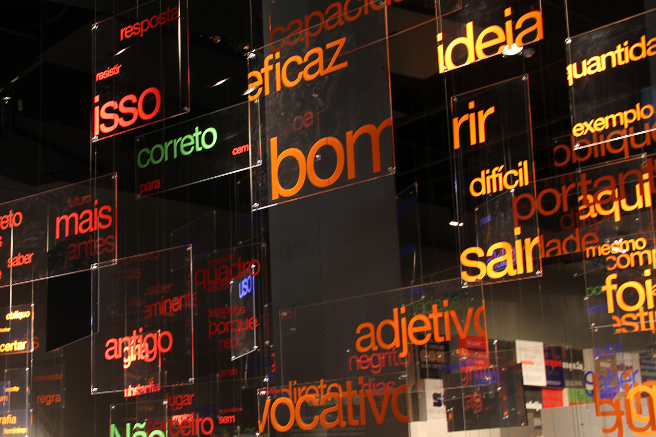 Com instalações interativas e provocadoras, a exposição desafiou visitantes a repensarem suas próprias crenças sobre a língua, lançando perguntas como: "Por que erramos, se erramos?" e "O que define o acerto?". O percurso explorou a ideia de sensibilidade linguística, mostrando como o domínio da língua envolve o trânsito entre registros formais e informais, e como a língua varia de acordo com o contexto, a classe social, a região e a vivência de cada indivíduo.