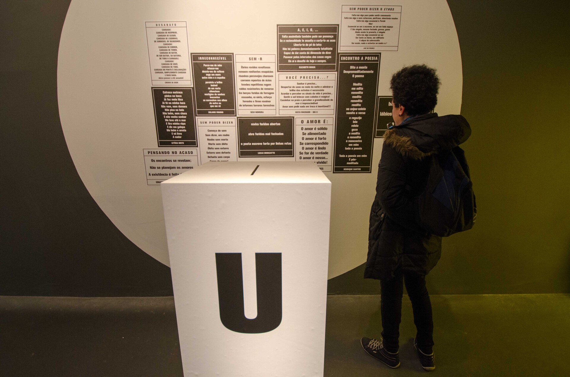 Baseada no universo editorial do jornal Plástico Bolha, a exposição contou com a colaboração de poetas de todo o país. Uma das salas expositivas oferecia livros em branco, com apenas uma palavra nas lombadas e um texto de apresentação, incentivando os visitantes a criar e registrar seus próprios poemas. Além disso, desafios espalhados pelo espaço expositivo estimulavam a percepção da poesia urbana, presente nas ruas e muros das cidades. Grafites e fotografias compunham um cenário que convidava à reflexão sobre as múltiplas formas de enxergar a poesia no cotidiano.