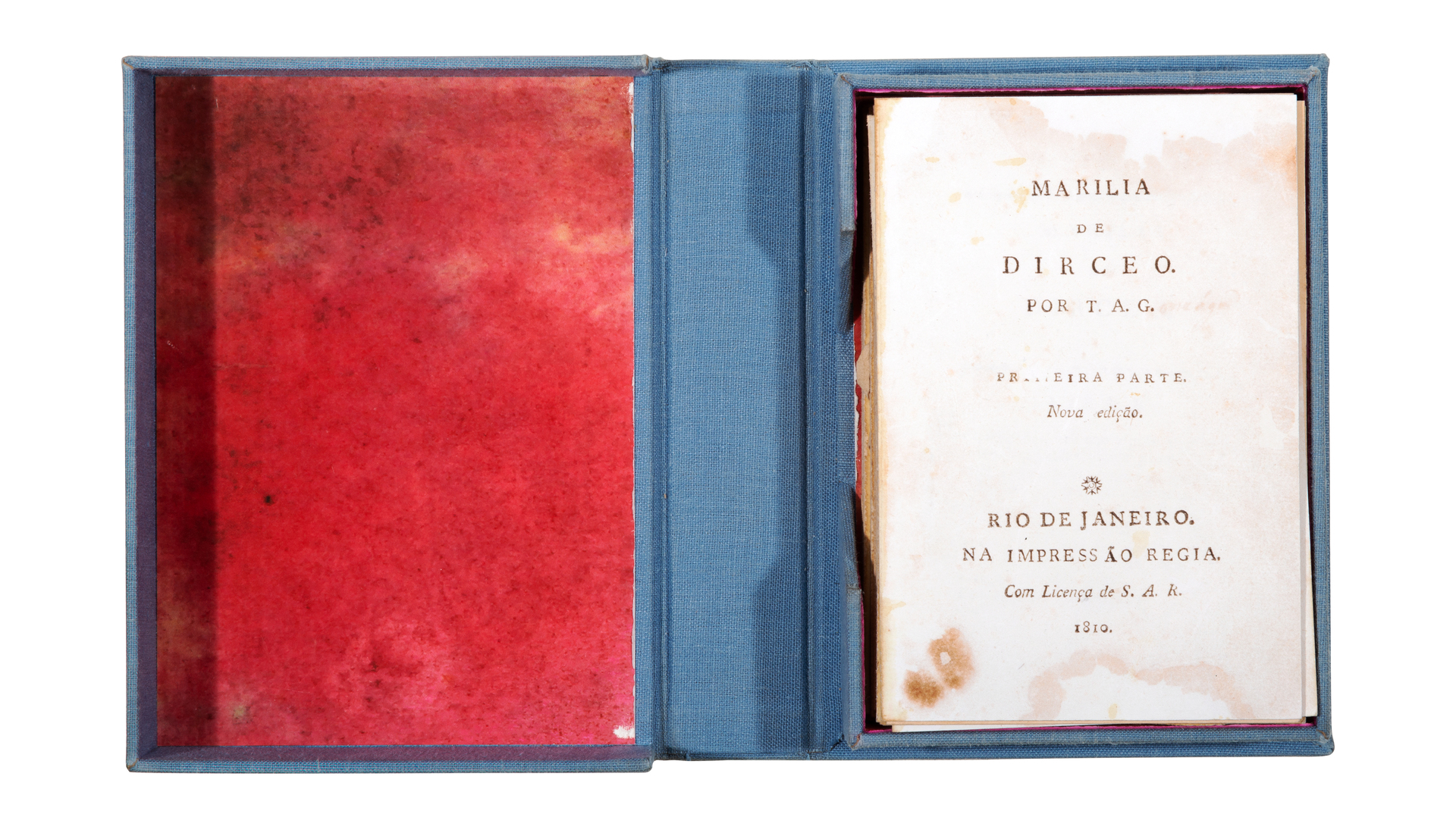 Réplica da primeira edição do livro Marília de Dirceu impressa no Brasil.
