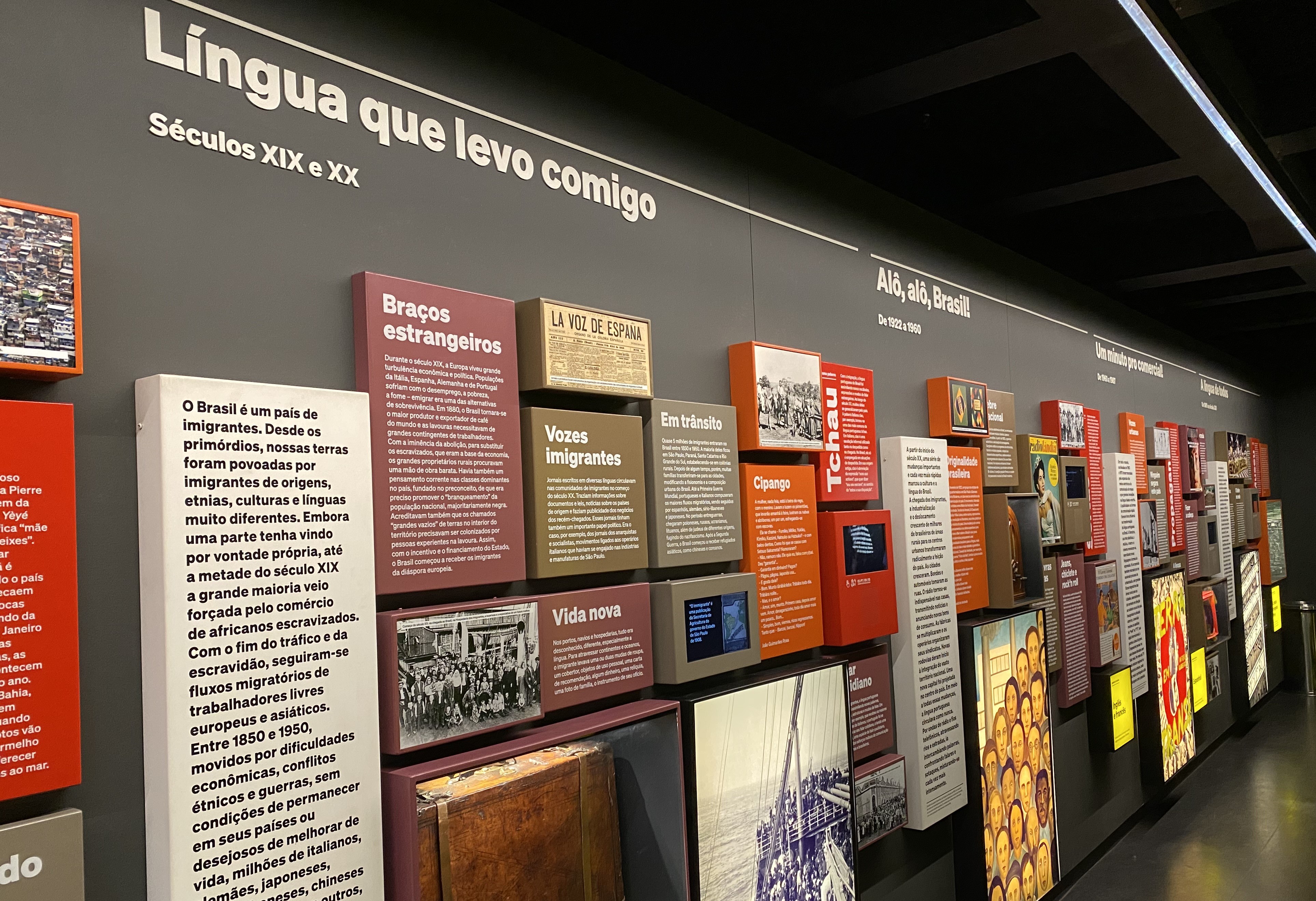 A história de uma língua é inseparável da de seus falantes, daqueles que a herdaram, a modificaram e a recriaram ao longo do tempo. Neste quarto arco narrativo, vamos continuar nossa viagem pela formação histórica da nossa língua (confira também o primeiro, o segundo e o terceiro), dessa vez caminhando pela presença de imigrantes na língua portuguesa apresentada na experiência Português do Brasil, da exposição principal do Museu da Língua Portuguesa.