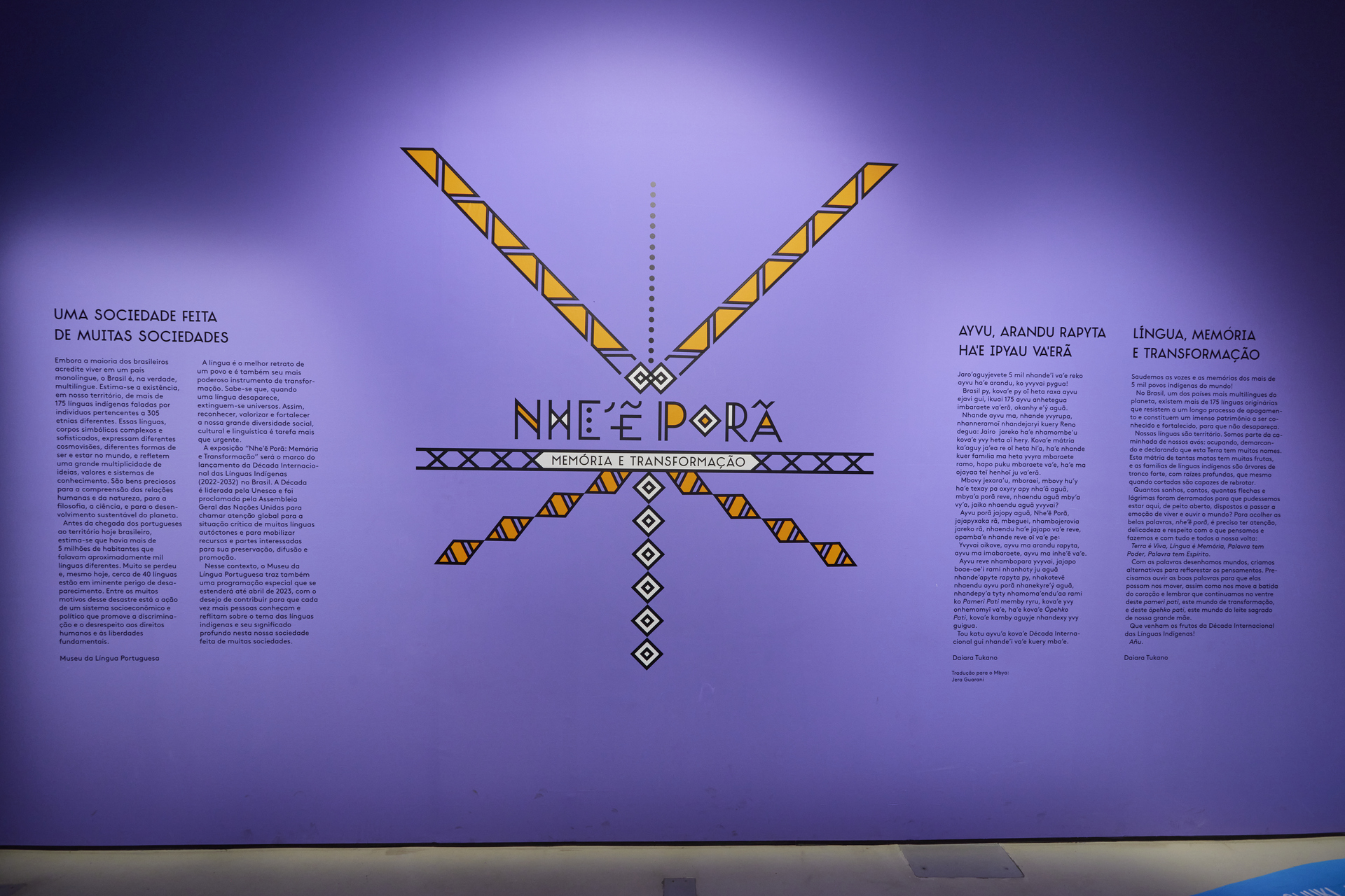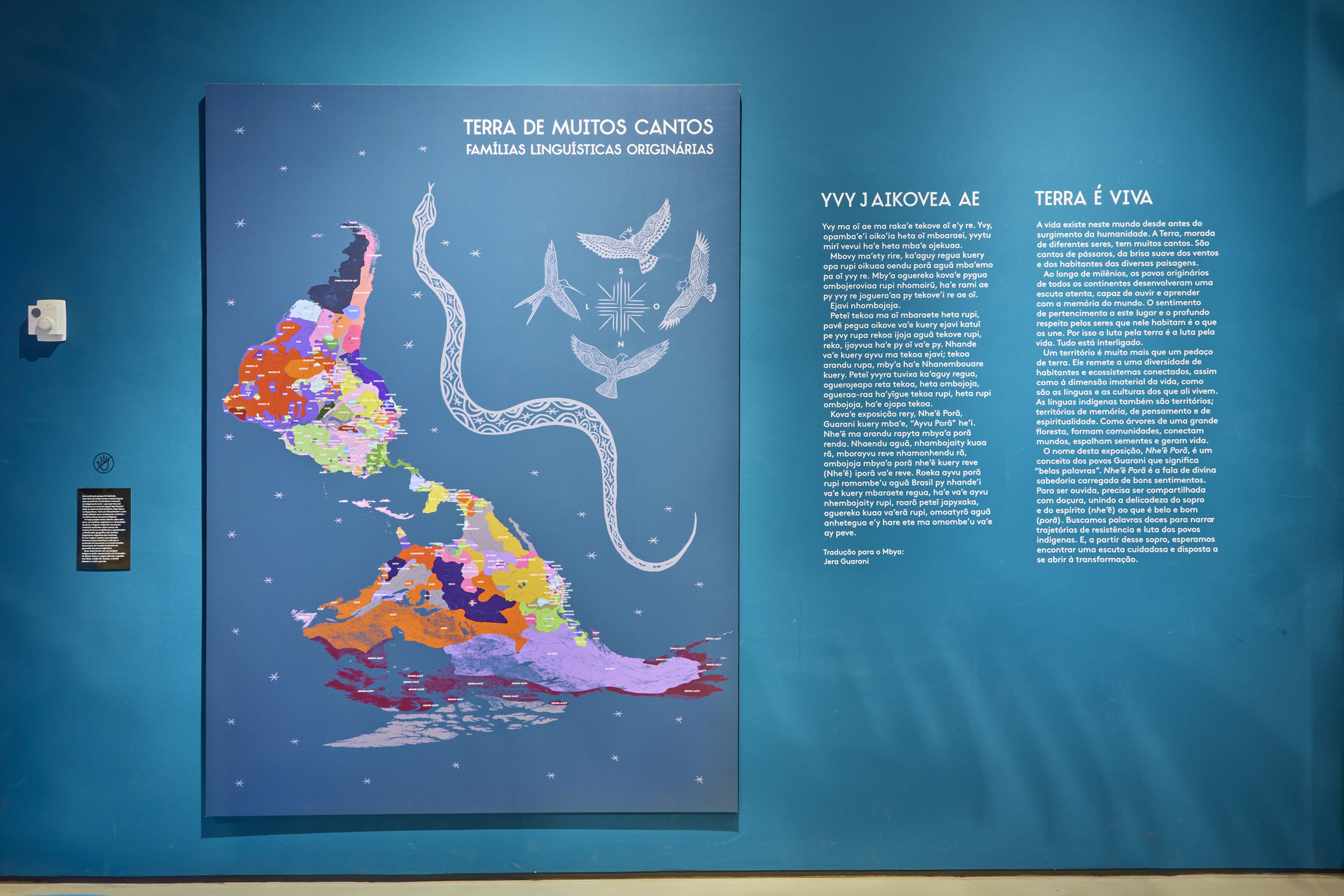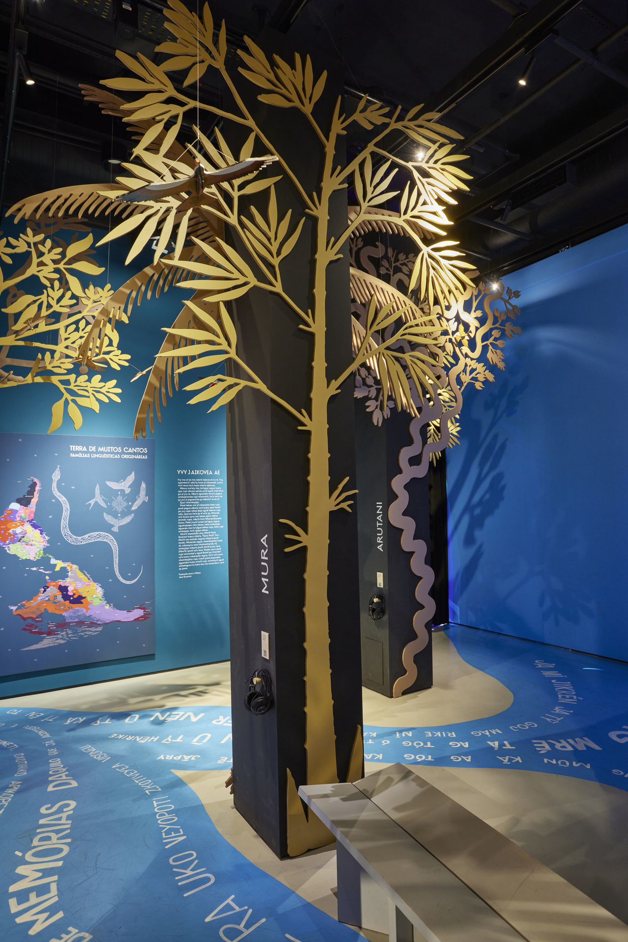A seção também conta com a instalação "Floresta de Muitos Cantos", que evidencia a presença de pássaros e árvores, cujos troncos contém nome de famílias linguísticas, tais como Karib, Tukano, Bororo, Trumai, Arutani, Mura, Yaathe, Kanoê, Charrua entre outras. Em cada árvore, há áudios de falantes de diversas línguas pertencentes a mesma família linguística, possibilitando a imersão na diversidade das línguas indígenas.
