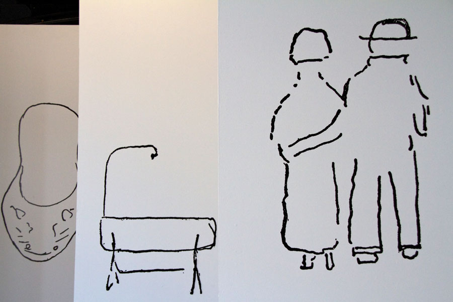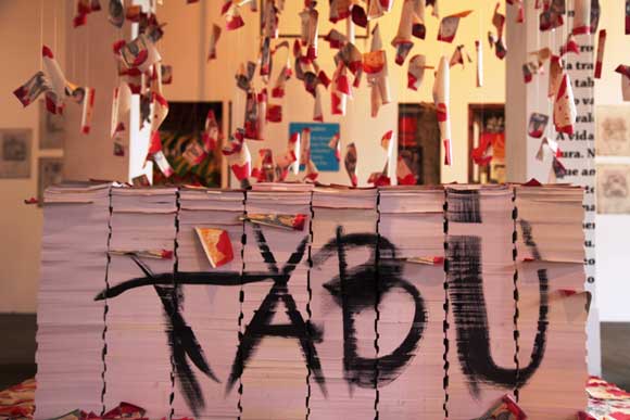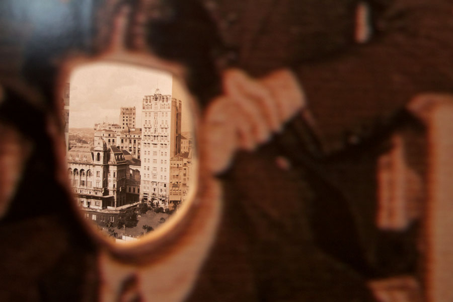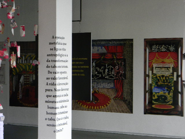 Na parede do fundo, eram projetados fragmentos de filmes baseados na obra de Oswald.