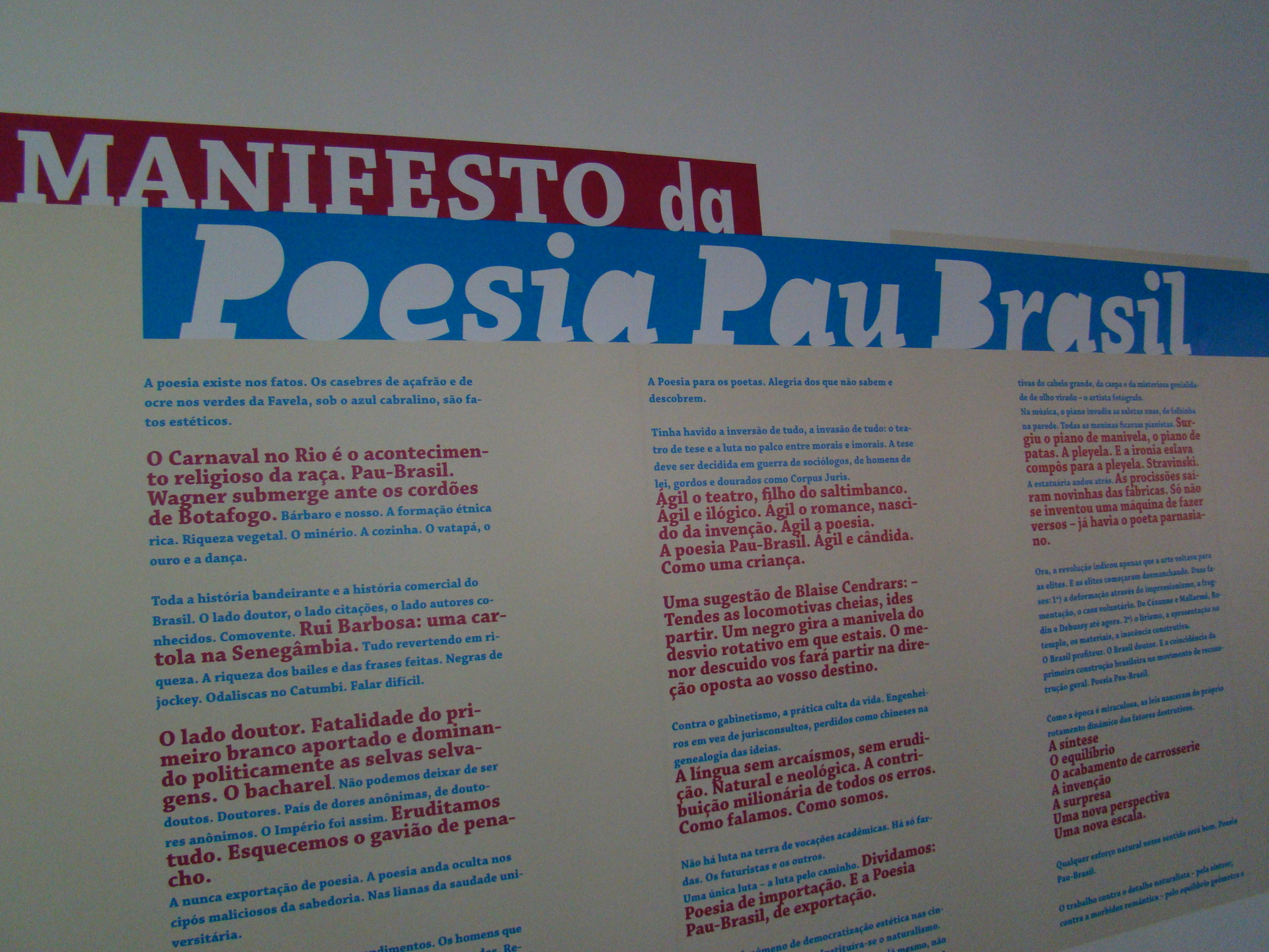 Manifesto Antropófago – Reprodução integral do texto com passagens que saltavam visualmente do conjunto, em tamanhos maiores e em cores.