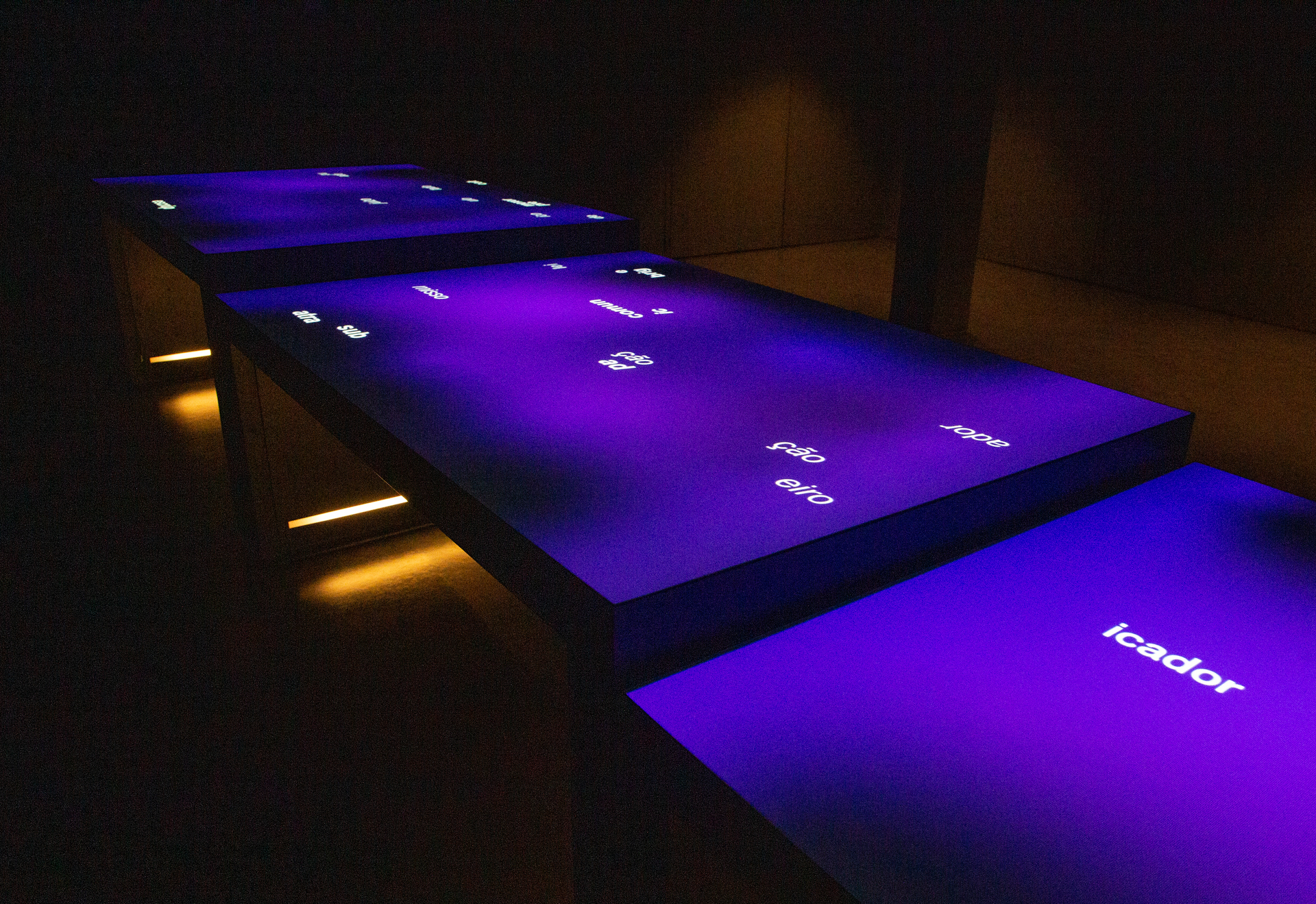 A estruturação da experiência inclui duas mesas interativas de alturas diferentes nas quais o visitante consegue formar palavras e saber mais sobre suas origens. Projetadas sobre as mesas, partes de palavras podem ser manipuladas pelo visitante que, ao formar as palavras selecionadas, acionam um vídeo que conta a origem etimológica da palavra.