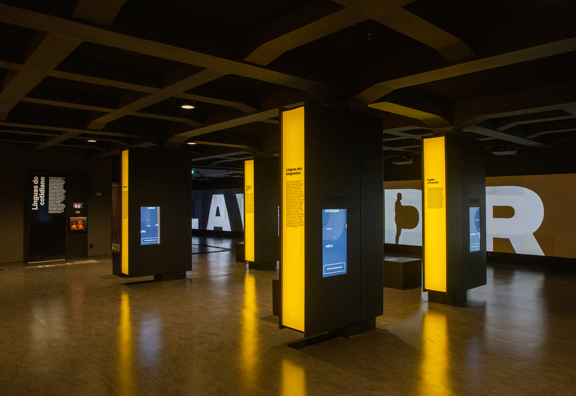 O Museu da Língua Portuguesa aborda a vida multilíngue da língua portuguesa em diversas áreas de sua exposição principal.